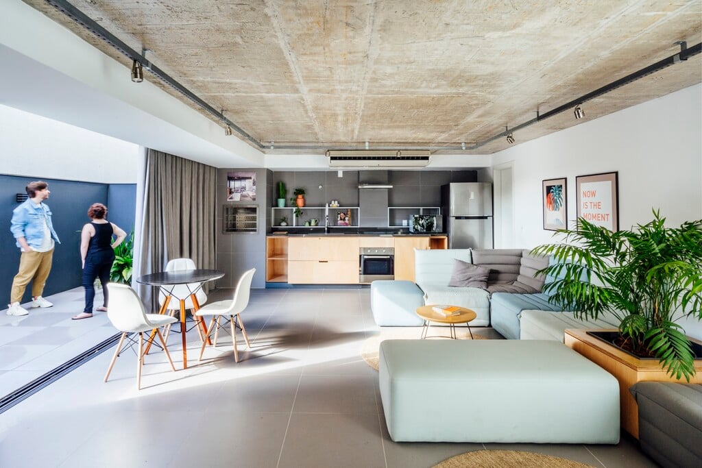 Studios de 28m² a 36m² privativos e coberturas duplex de 62m² a 75m² privativos.