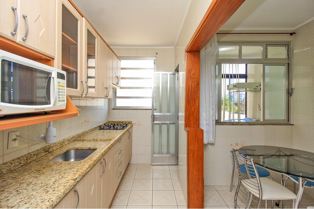 O apartamento está semi mobiliado, com cozinha e banheiro equipados com móveis sob medida, o que garante aproveitamento inteligente dos espaços e mais funcionalidade no dia a dia.