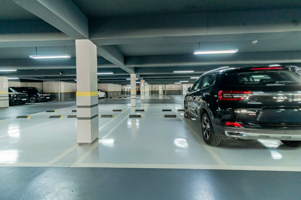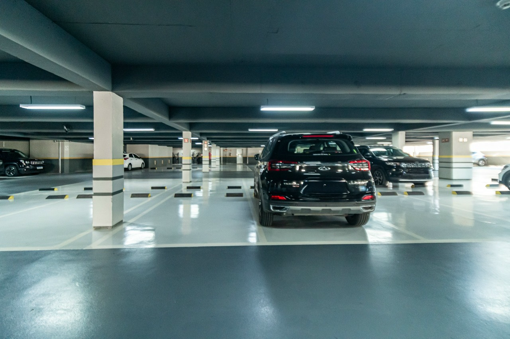 Uma vaga de garagem coberta.