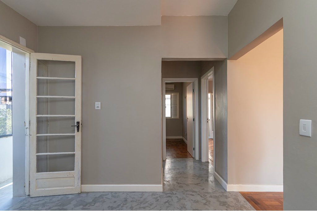 Apartamento de 3 dormitórios localizado no segundo pavimento em Porto Alegre, sendo um dos quartos versátil para uso como escritório, sala de TV ou jantar.