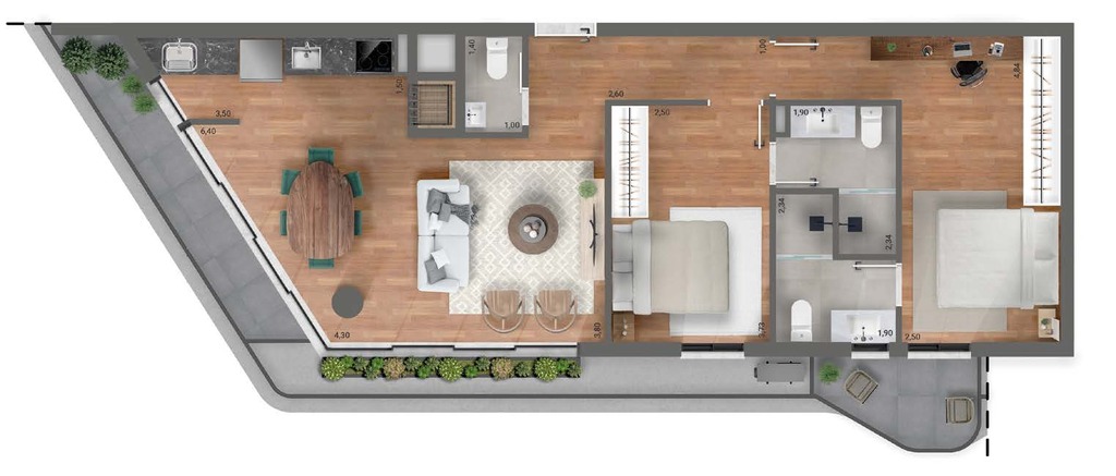 Mas é nas alturas que o maior destaque do projeto se descortina: um rooftop com piscina de borda infinita, conectado a um living de arquitetura com design brasileiro, convidam a uma nova intensidade de contemplação e admiração. Para o pôr do sol mais belo, um mirante de prestígio.