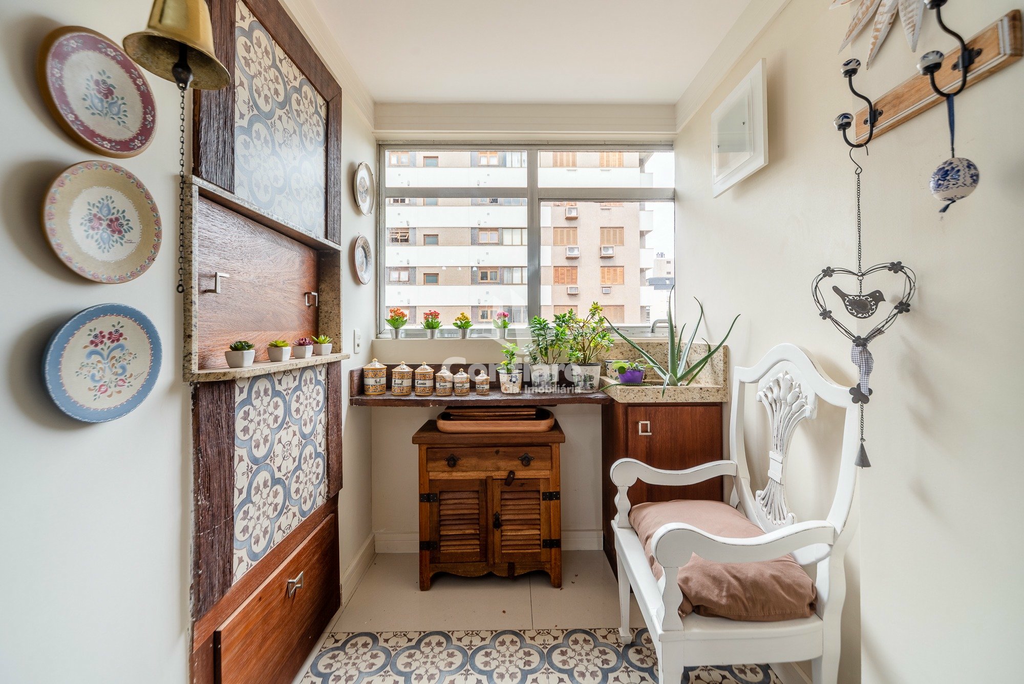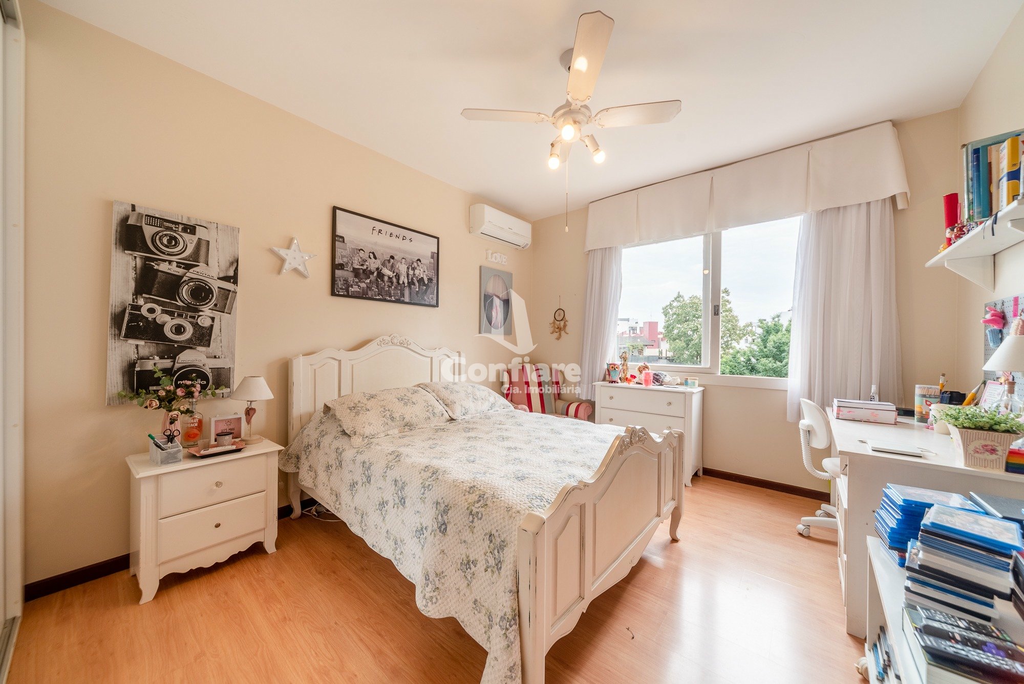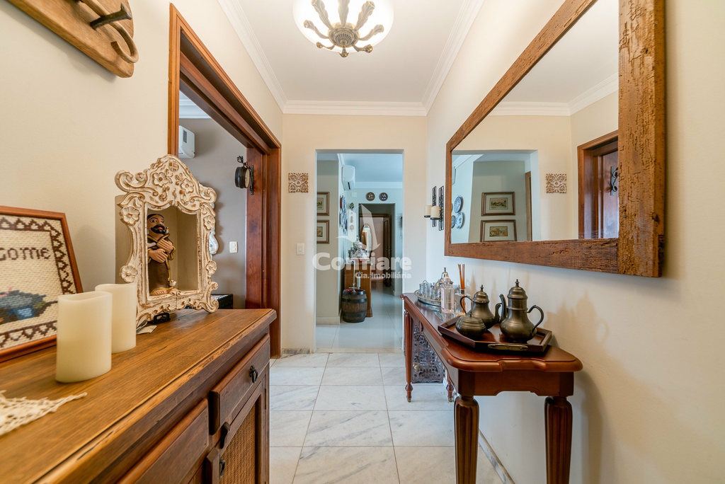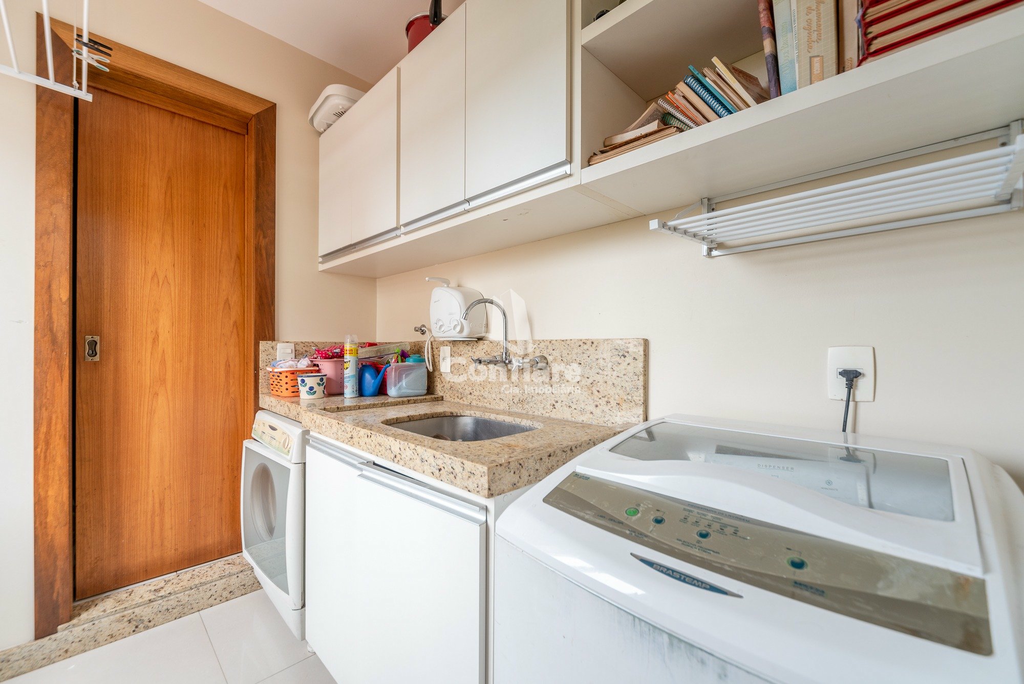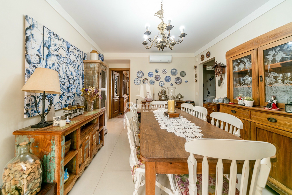 Conta com 4 dormitórios, sendo 2 suítes, banheiro social, lavabo, hall privativo, living para 3 ambientes, sala de jantar com espaço para churrasqueira, escritório com sacada fechada, cozinha ampla com copa, área de serviço com entrada independente e banheiro de serviço.