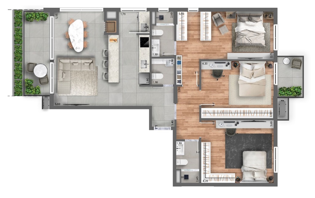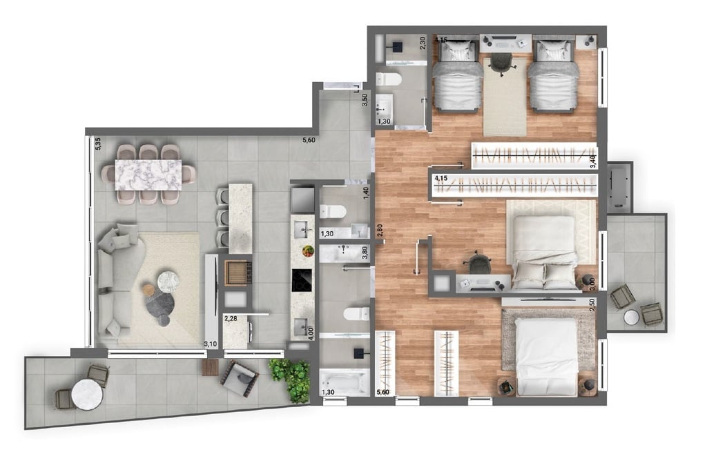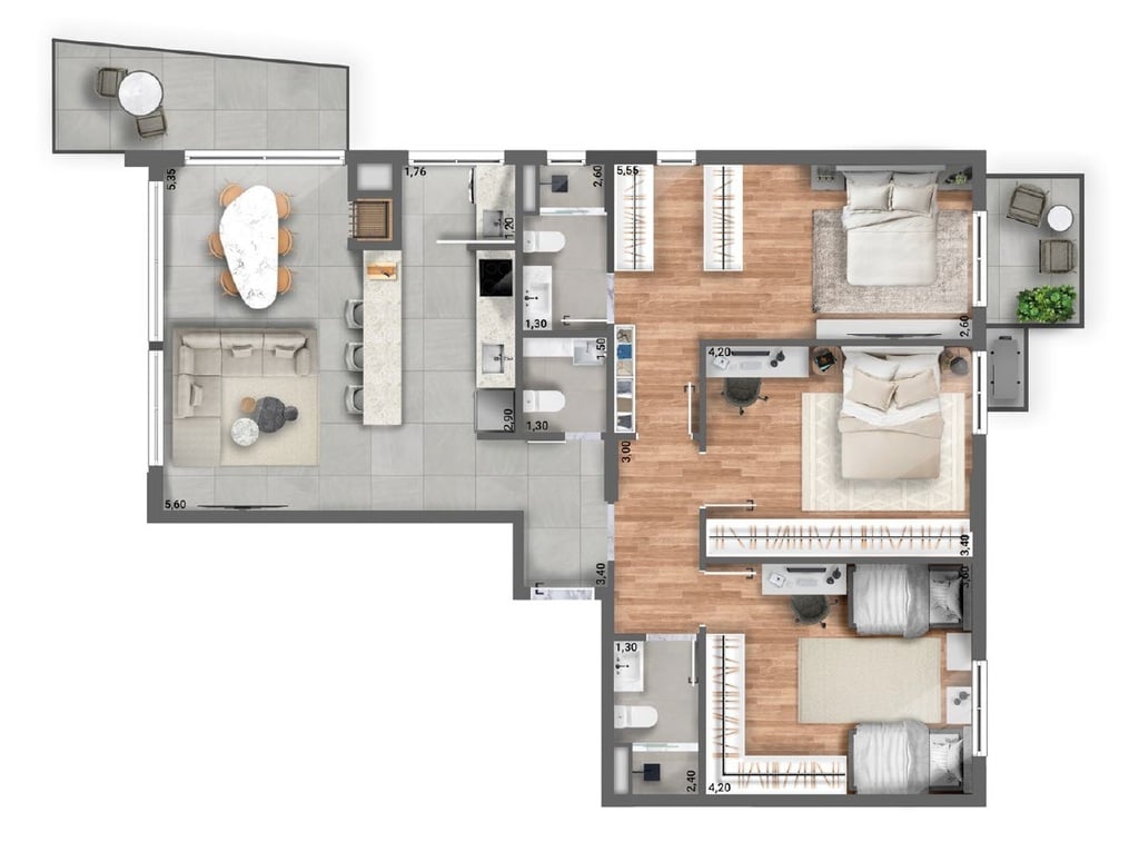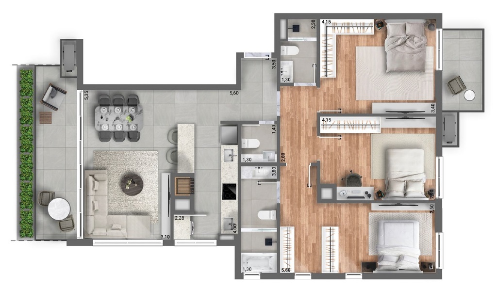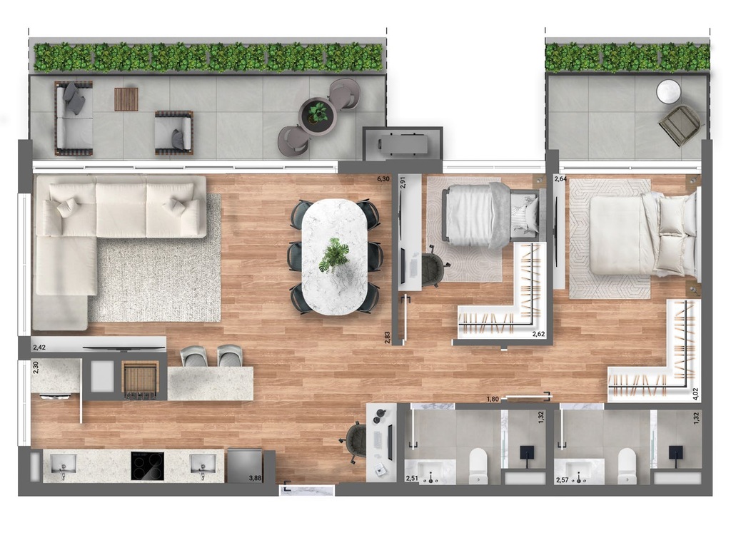 Diversão traduzida em áreas comuns amplas, generosas, que estendem as possibilidades e respeitam a intimidade de cada um.