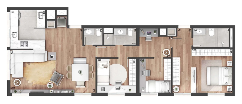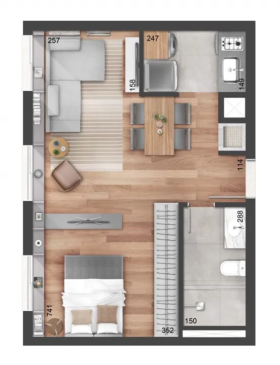 O empreendimento possui o conceito "MYPLAN", sendo possível realizar junções nas unidades com as seguintes metragens: 43,13m² + 65,21m² = 108,34m² e 53,08m² + 74,68m² = 127,76m², expandindo de 1 até 3 dormitórios (possibilidade de 2 dormitórios com living estendido).