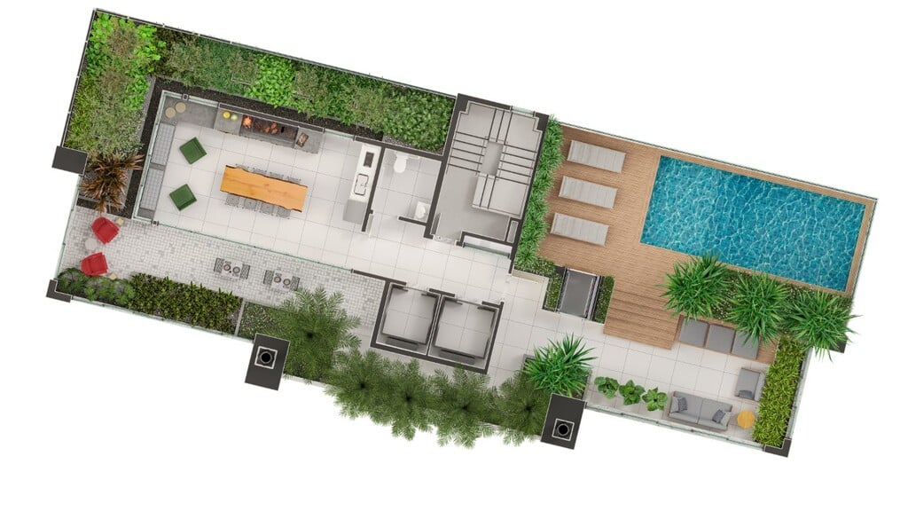 Um projeto com um design atual que valoriza as linhas retas e impressiona pela leveza dos volumes, pelo charme dos detalhes e pela discreta sofisticação princípios chave para nosso tempo.