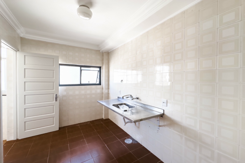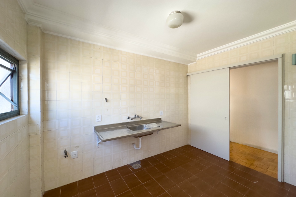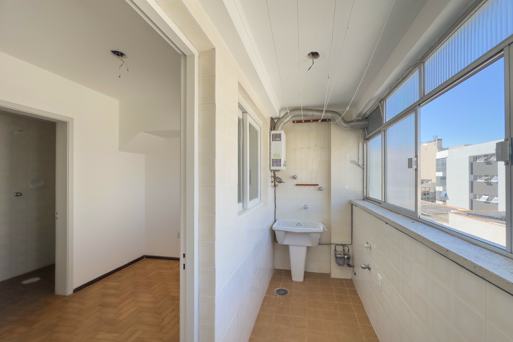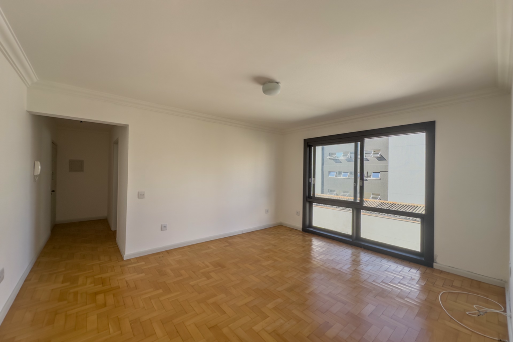 Com 73m2 de área privativa, de fundos, living amplo para 2 ambientes, banheiro social, cozinha, dependência de empregada com banheiro auxiliar, área de serviço separada, posição solar Leste e Sul, rede hidráulica e elétrica renovadas.