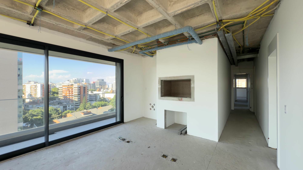São 3 suítes com lavabo, lareira convencional, churrasqueira e sacada.