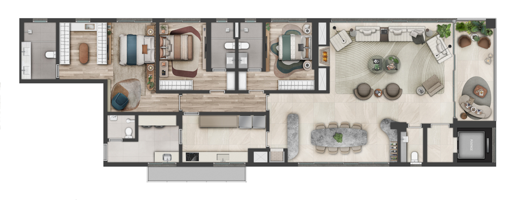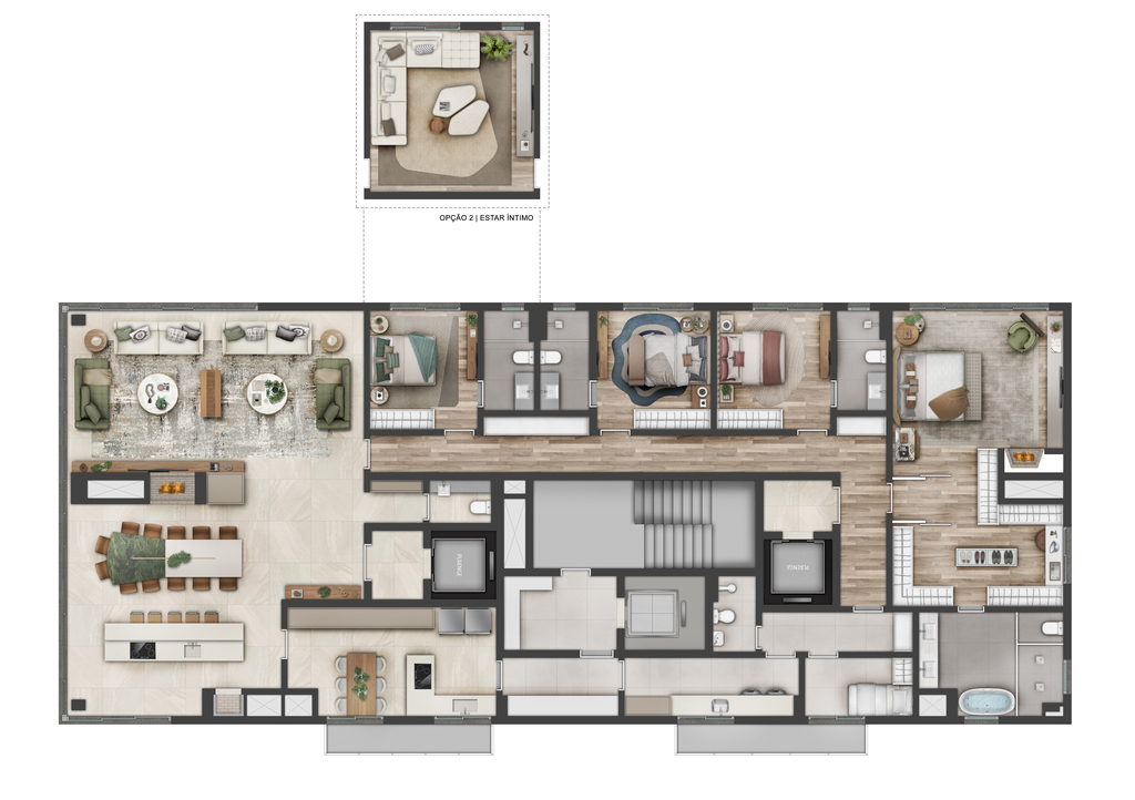Harmonia perfeita entre detalhes que se complementam e promovem experiência espacial surpreendente.