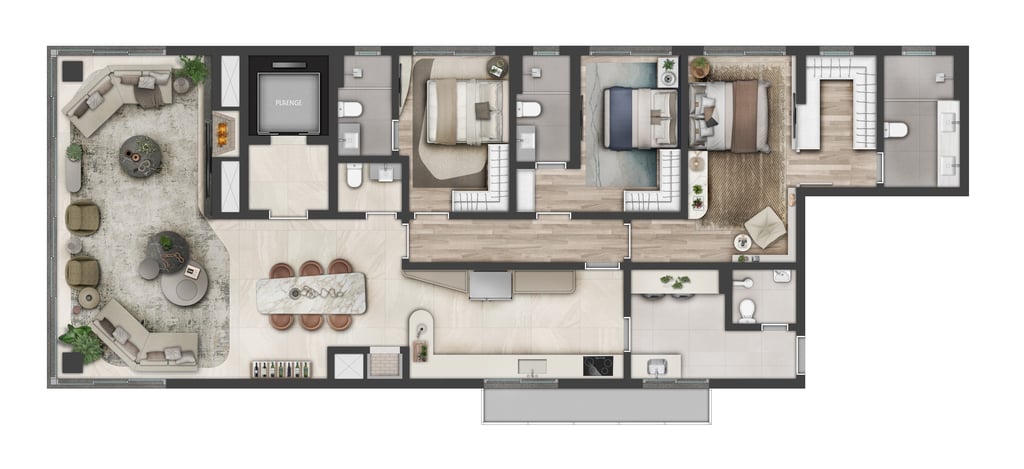 Harmonia perfeita entre detalhes que se complementam e promovem experiência espacial surpreendente.
