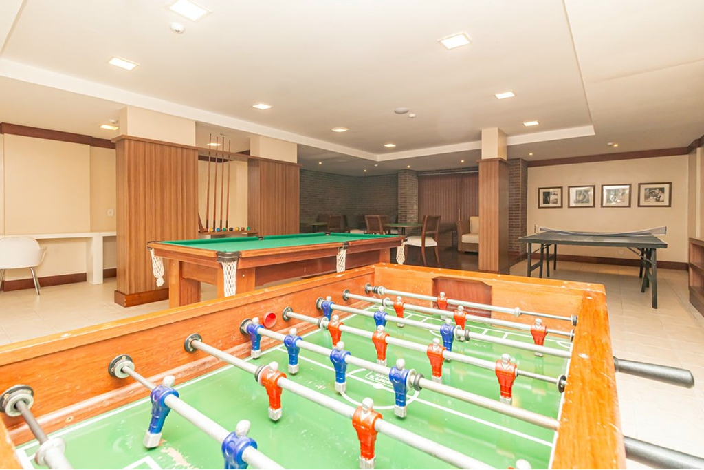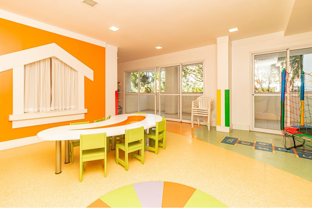 O condomínio oferece infraestrutura completa de lazer com piscinas adulto e infantil aquecidas, academia, salão de jogos, brinquedoteca, 2 salões de festas, playground, campo de futebol, espaço de confraternização, portaria 24 horas e gerador elétrico para áreas comuns.
