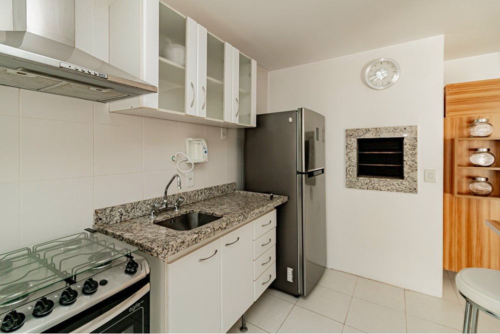 O imóvel conta com 2 dormitórios, 1 banheiro, sala de estar com 2 ambientes, sacada com vista panorâmica, cozinha com churrasqueira, lavanderia e 1 vaga de garagem coberta e escriturada.